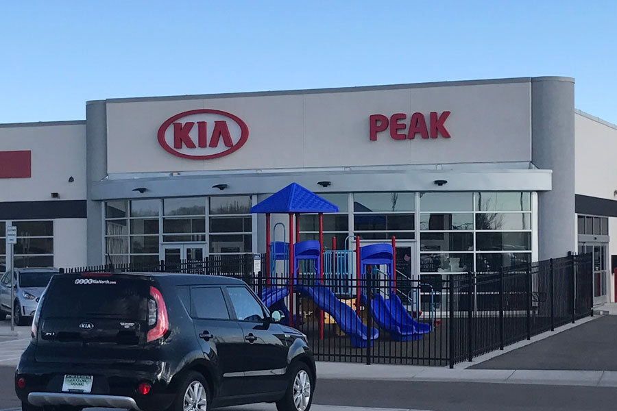 Working with Casseday Creative Design, Mishler was engaged to provide Pre-construction and General Contracting Services for the construction of a Service and Hospitality facility for Peak KIA North located in Windsor, CO. This 23,000 square foot facility included areas for service and customer hospitality. Features include an express oil and filter change lane and a 6,500-square-foot automotive service area with enough room for 11 vehicles at a time. Other areas include a conference and break room, offices, public restrooms and a customer hospitality center for customers to wait while their car is serviced. The hospitality center includes a fenced, outdoor playground that can only be accessed from inside the building, an upscale coffee bar, Internet bar and a fireplace for the ambiance. The lot includes 176 parking spaces, with about 25 dedicated for customers.