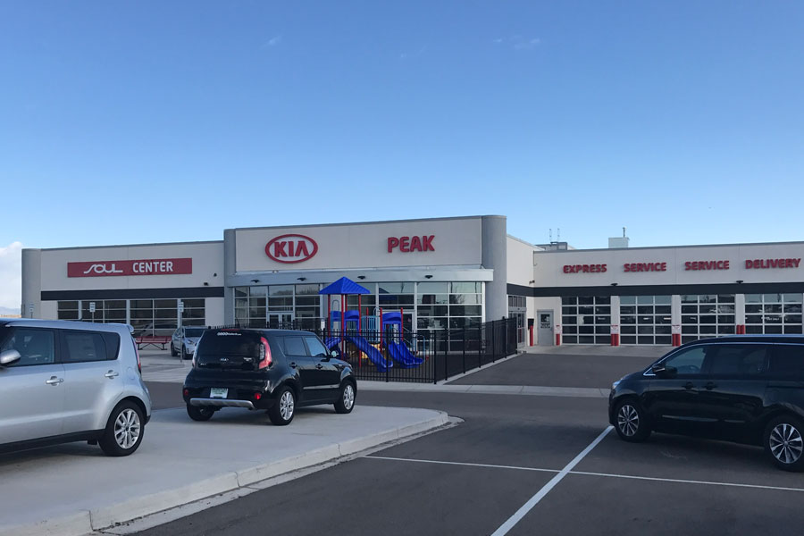 Working with Casseday Creative Design, Mishler was engaged to provide Pre-construction and General Contracting Services for the construction of a Service and Hospitality facility for Peak KIA North located in Windsor, CO. This 23,000 square foot facility included areas for service and customer hospitality. Features include an express oil and filter change lane and a 6,500-square-foot automotive service area with enough room for 11 vehicles at a time. Other areas include a conference and break room, offices, public restrooms and a customer hospitality center for customers to wait while their car is serviced. The hospitality center includes a fenced, outdoor playground that can only be accessed from inside the building, an upscale coffee bar, Internet bar and a fireplace for the ambiance. The lot includes 176 parking spaces, with about 25 dedicated for customers.